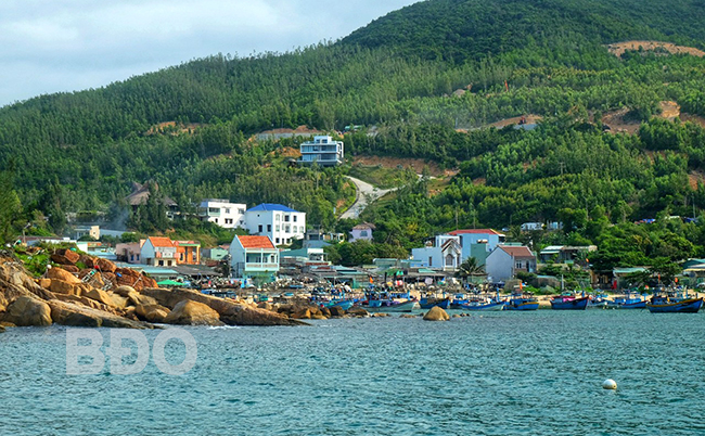 Làng chài Bãi Xép mang vẻ đẹp quyến rũ với địa thế núi biển liền kề. Ảnh: NGỌC NHUẬN