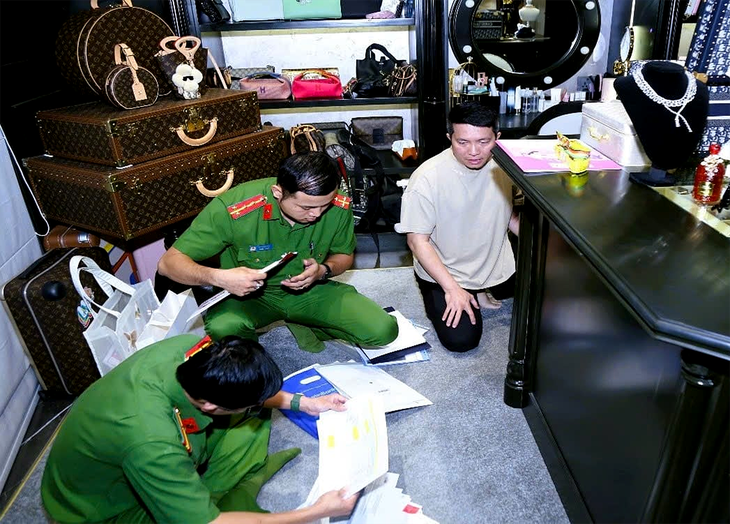 Khám xét nơi ở của bị can Nguyễn Quốc Vũ – Ảnh: Công an cung cấp