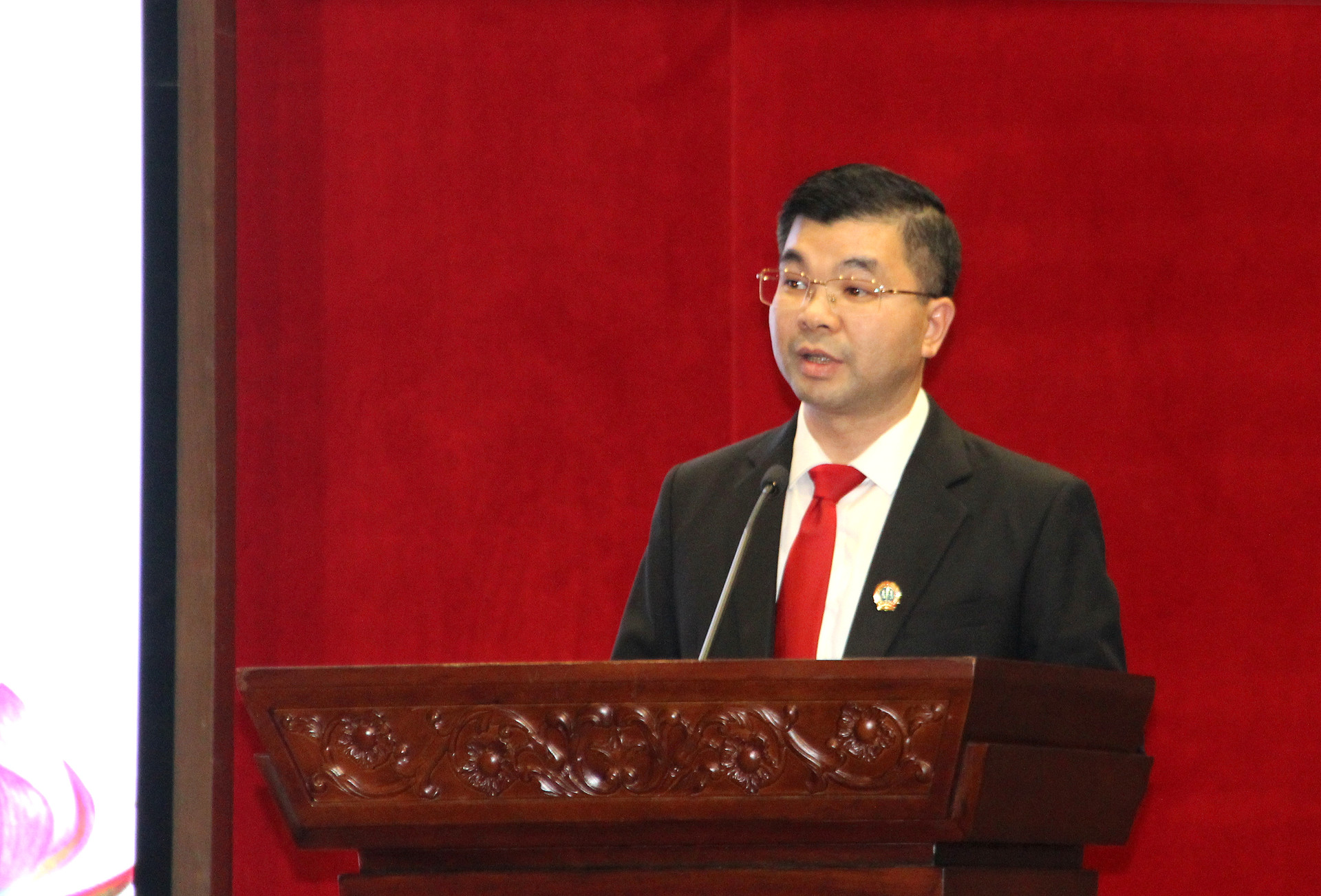 Đồng chí Nguyễn Chí Công thay mặt các cán bộ được bổ nhiệm phát biểu nhận nhiệm vụ.