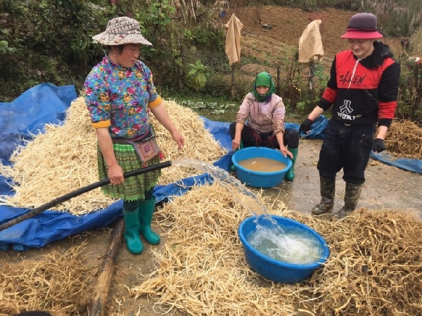 Bà con Tả Văn Chư (Bắc Hà) rửa sạch sản phẩm củ dược liệu Cát Cánh trước khi cung ứng cho Trung tâm Dịch vụ nông nghiệp huyện
