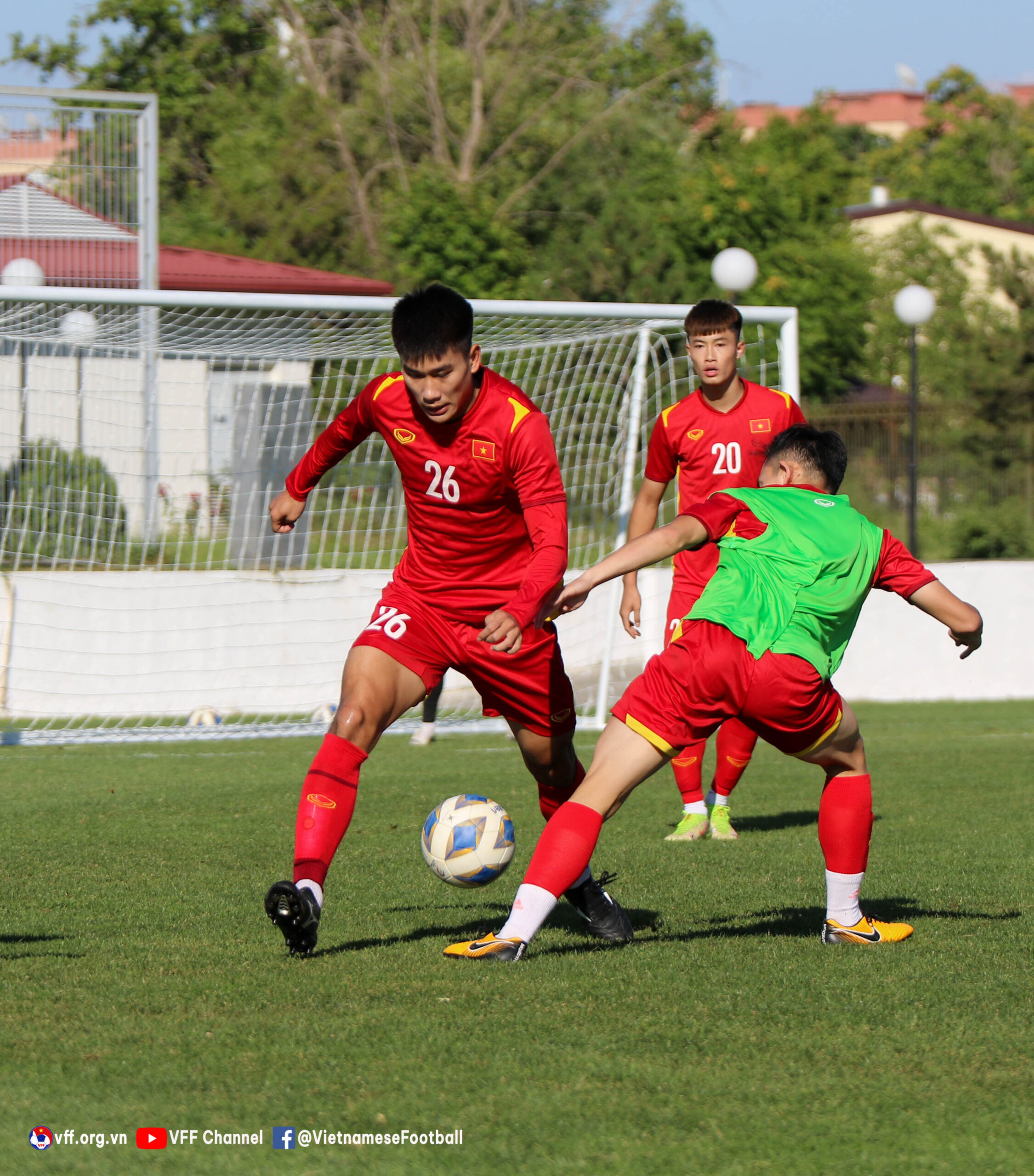 Buổi tập chiều nay mở đầu với phần khởi động đầy hứng khởi. Tuy vậy, khi chuyển sang phần tập chiến thuật là bầu không khí tập trung cao độ. Đây là buổi tập có ý nghĩa rất quan trọng đối sự chuẩn bị cho trận đấu với u23 Thái Lan, nên HLV Gong Oh-kyun đã đưa ra những yêu cầu rất cao đối với các học trò. Toàn đội đều hiểu quỹ thời gian còn lại không cho phép bất cứ một sự chểnh mảng nào và tranh thủ từng phút trên sân tập để đưa bộ máy U23 Việt Nam hoạt động nhịp nhàng. Các cầu thủ cũng cho thấy ý thức đáng khen ngợi khi luôn chủ động trao đổi với BHL về những điểm còn chưa rõ trong giáo án tập luyện, qua đó giúp vận dụng một cách thành thục hơn.