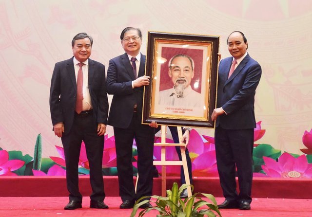 Chủ tịch nước Nguyễn Xuân Phúc trao tặng ảnh chân dung Chủ tịch Hồ Chí Minh cho Liên hiệp các Hội Khoa học và Kỹ thuật Việt Nam