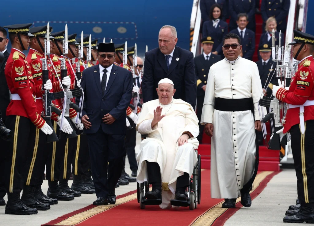 Theo Hãng tin Reuters, Giáo hoàng Francis đã hạ cánh tại sân bay Soekarno–Hatta, Jakarta, ngày 3-9, cùng đoàn tùy tùng và các phóng viên đi cùng.