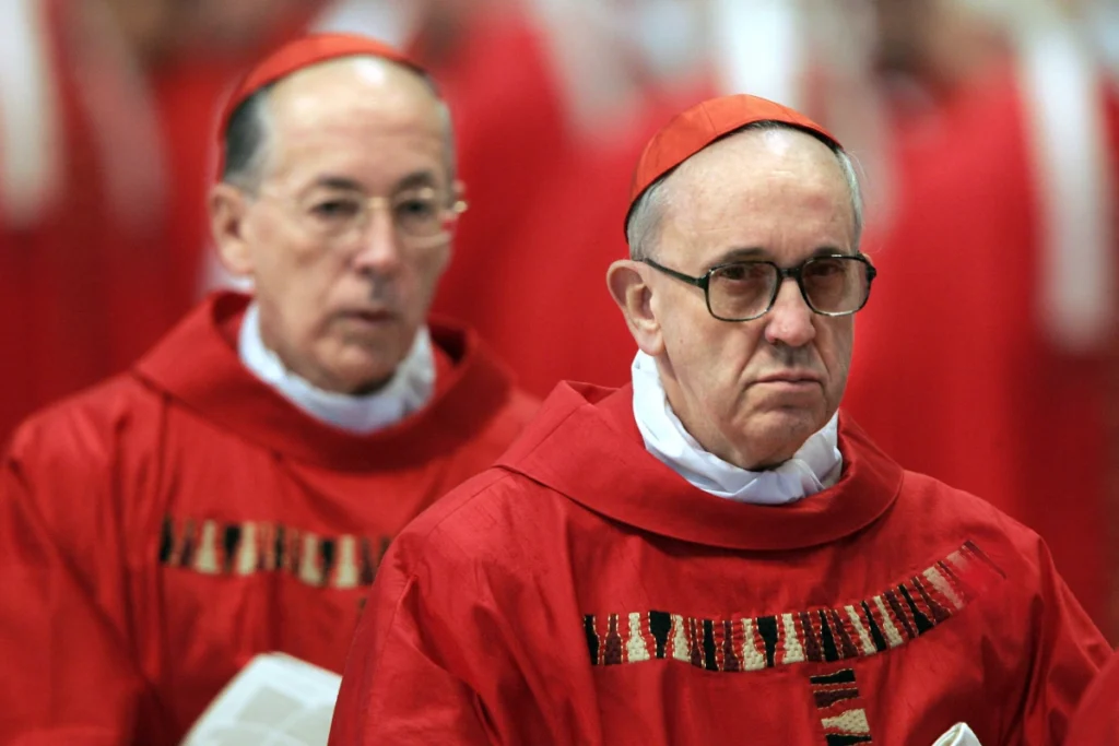 Hồng y Bergoglio (phải) dự thánh lễ tại Vatican, ngày 18/4/2005.