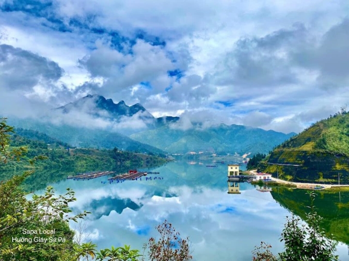Nước ở đây quanh năm phủ một màu xanh đẹp mắt phản chiếu nền trời và soi bóng cả dãy Hoàng Liên Sơn nằm cạnh bên, tạo nên một bức tranh thủy mặc đẹp mê mẩn. Ở phía xa xa, những thửa ruộng bậc thang ở bản Tả Van ẩn hiện phía sau góp phần tô điểm vẻ đẹp hữu tình của hồ.