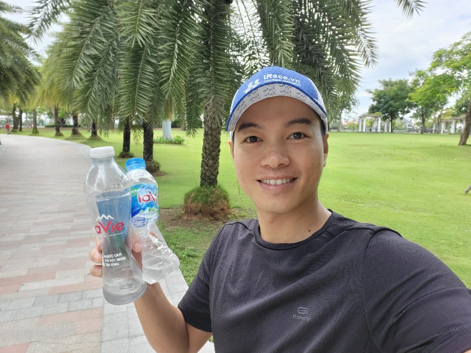 Sau khi uống hết nước khoáng, runner Trần Ngọc Chính giữ lại vỏ chai để tham gia thử thách “Mang chai – Đổi áo”. Vỏ chai này sẽ được thu gom và tái chế thành những chiếc áo.
