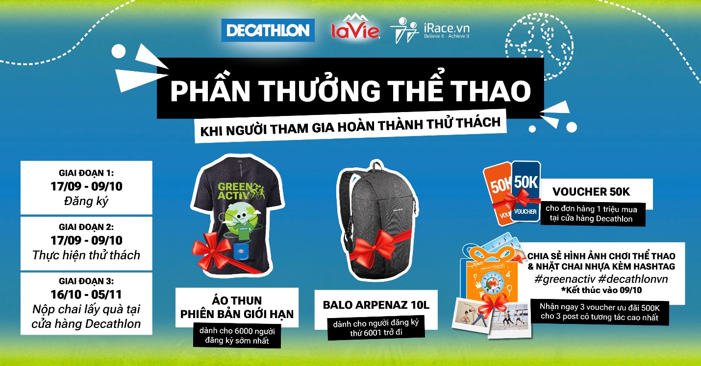 Sau khi hoàn thành thử thách, người chơi đem vỏ chai đến cửa hàng Decathlon tại Tp. HCM và Hà Nội để nhận phần thưởng, bao gồm áo thun được làm từ vỏ chai tái chế phiên bản giới hạn.