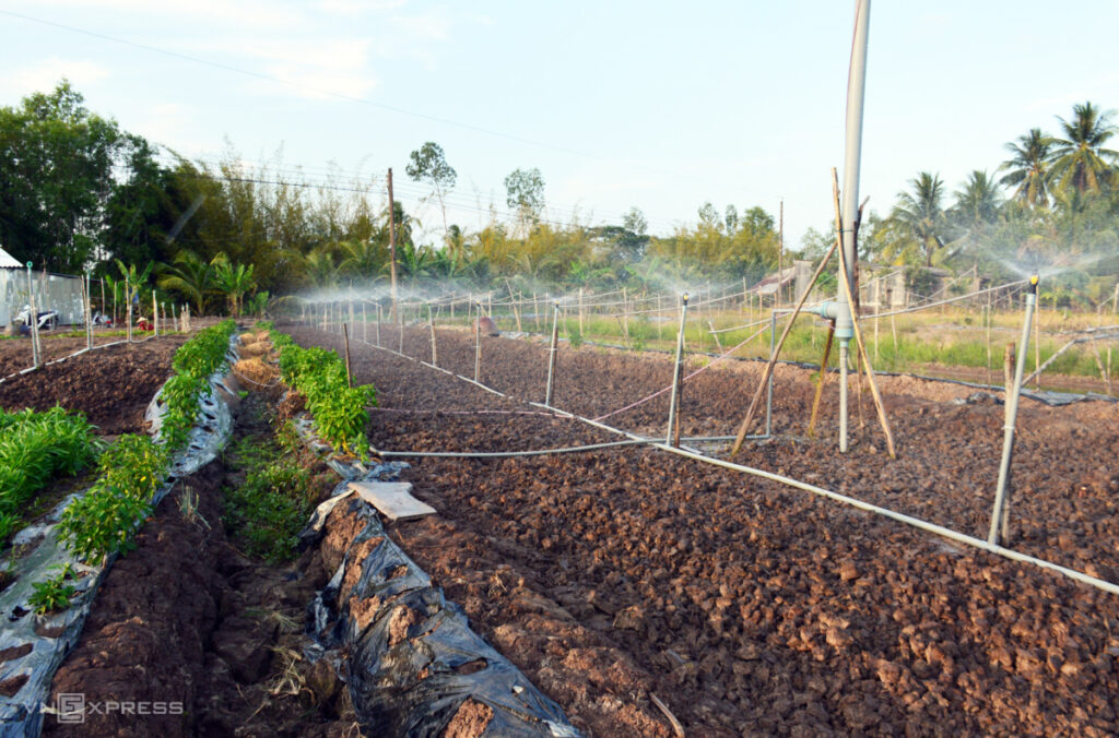 “Lượng nước dưới đìa chỉ còn đủ tưới khoảng một tháng nữa. Nếu dùng nước bơm từ trụ nước ngầm thì tiền điện sẽ tăng thêm rất nhiều”, bà Mai nói, cho biết vài tháng tới dự định dừng trồng rau vì thiếu nước tưới.