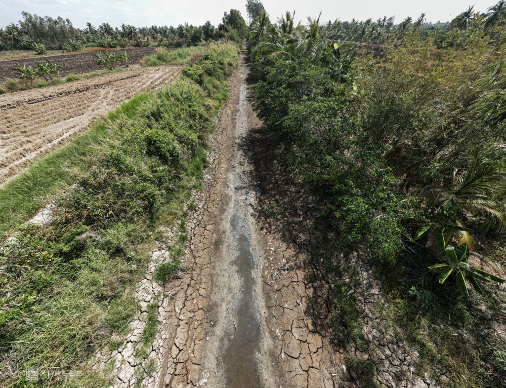 Đồng bằng sông Cửu Long mùa này kênh rạch trơ đáy, đường sá sụt lún, lúa chết vì ruộng đồng khô khốc, nứt nẻ, người dân phải mang can nhựa xếp hàng ngày đêm xin nước.