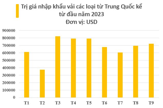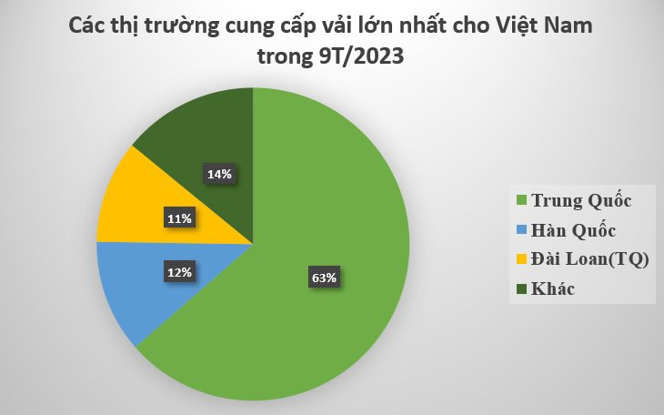 Trong số các nhà cung cấp, Trung Quốc là thị trường cung cấp vải lớn nhất cho Việt Nam, đồng thời tăng mạnh trong thời gian gần đây. Trong tháng 9, nhập khẩu vải từ thị trường Trung Quốc đạt hơn 723 triệu USD, tăng 4% so với tháng trước đó. Hết quý 3, Trung Quốc thu hơn 6,09 tỷ USD nhờ xuất khẩu vải sang Việt Nam, giảm 15,3% so với cùng kỳ năm trước và chiếm tỷ trọng đến 63%.