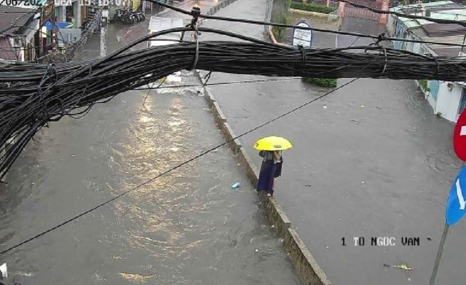 Các tuyến đường quanh khu chợ Thủ Đức như: Đặng Thị Rành, Hồ Văn Tư, Tô Ngọc Vân, Kha Vạn Cân, nước từ các khu vực cao hơn chảy về ồ ạt gây ngập nặng.