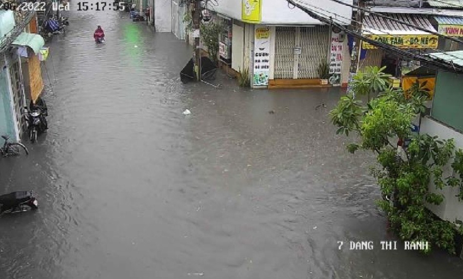Nước ngập đường Đặng Thị Rành (Thành phố Thủ Đức).