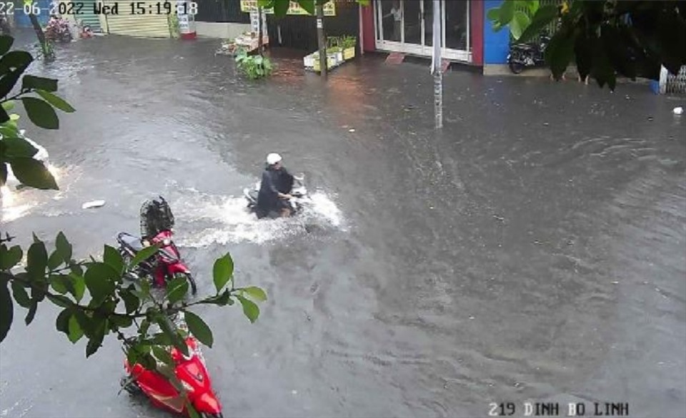 Nước ngập đường Đinh Bộ Lĩnh.