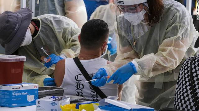 Một điểm tiêm vaccine phòng đậu mùa khỉ tại Công viên Eugene A. Obregon ở Los Angeles. Nguồn ảnh: CNN