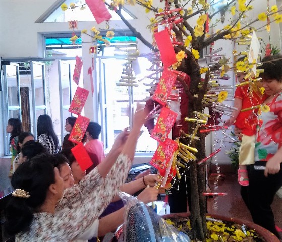 Trong không khí cả nước chuẩn bị đón Tết, người Công giáo cũng rộn ràng chuẩn bị đào hoa, mua sắm, dọn dẹp nhà cửa, lau bàn thờ… Song bên cạnh đó, họ còn có cách đón năm mới rất riêng, đó là chuẩn bị tâm hồn trong sáng: dọn mình xưng tội, làm nhiều việc bác ái như thăm hỏi tặng quà người nghèo khó, người khuyết tật… Những giáo dân tin rằng đó là những việc làm để lại may mắn cho con cháu và phúc phần cho chính mình sau này. Do đó, các xứ đạo thường tổ chức gói bánh chưng, chung tay mua quà tặng người neo đơn, người khuyết tật và những bệnh nhân phong cùi.