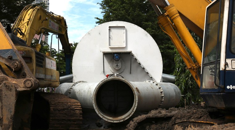 Khu vực thoát nước ra sông Sài Gòn của siêu máy bơm.