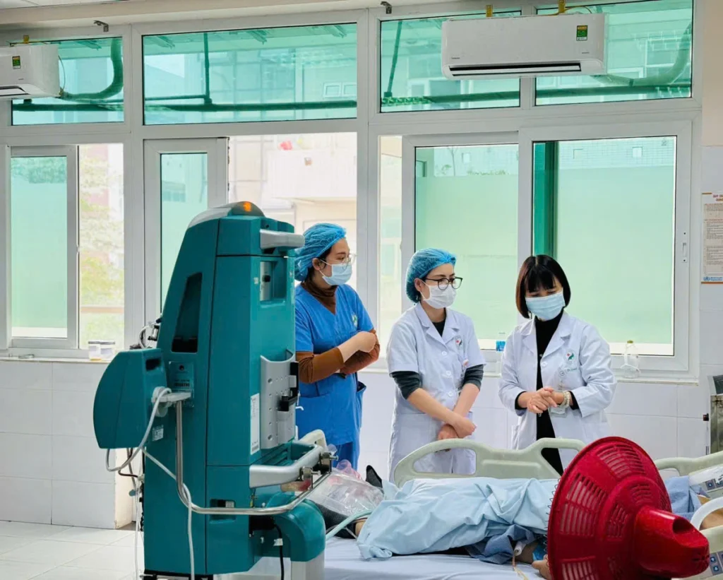 Nhóm y, bác sĩ bệnh viện đã triển khai các biện pháp hồi sức chuyên sâu như cấy máu, đờm tìm căn nguyên vi khuẩn, thở máy xâm nhập, tăng dần liều vận mạch, lọc máu liên tục và phối hợp kháng sinh sớm – đúng đích.
