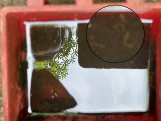 Hũ nhựa cho gà uống nước có nhiều lăng quăng trong đó.