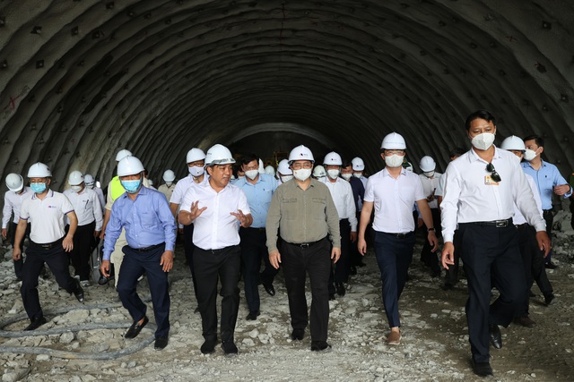 Thủ tướng Phạm Minh Chính thị sát hầm Núi Vung thuộc địa phận tỉnh Ninh Thuận dài 2,2 km, quy mô 3 làn xe, bề rộng hầm 14 m.