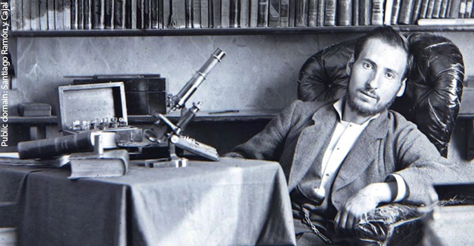 Năm 1877, Cajal dành dụm số tiền kiếm được khi còn là sĩ quan y tế trong quân đội Tây Ban Nha để mua cho mình một chiếc kính hiển vi. Nhìn qua ống kính, ông nghiên cứu và vẽ tự do nhưng với độ chính xác cao các cấu trúc nhỏ bé trong não, bao gồm tế bào thần kinh hoặc tế bào thần kinh.