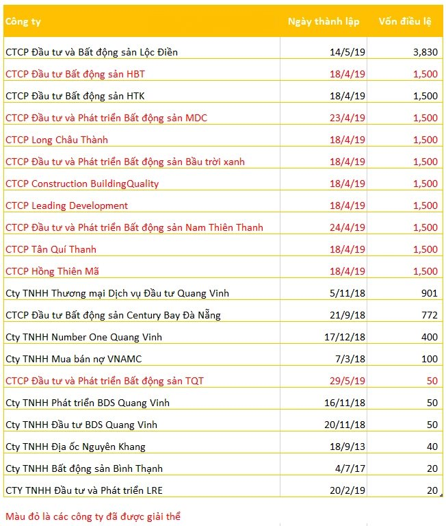 Tuy nhiên điều bất ngờ là chỉ vài tháng sau khi thành lập, vào tháng 8-9/2019, hầu hết các công ty trong số này đã đột ngột công bố giải thể với cùng lý do là “Không có dự án để đầu tư, phát triển và về việc duy trì hoạt động của doanh nghiệp không có hiệu quả”.