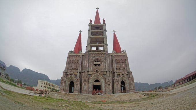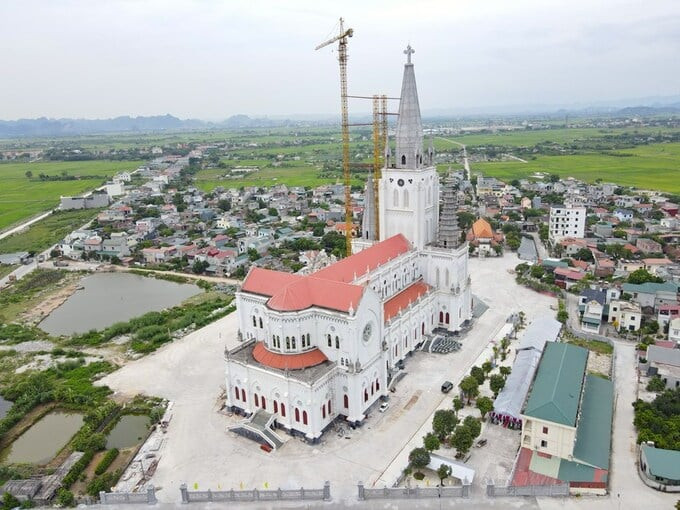 Toàn bộ nguyên vật liệu và phương tiện thi công nhà thờ Lãng Vân do Tập đoàn Kinh tế Xuân Thành tài trợ. Phần nhân công do giáo xứ đảm nhiệm. Với hàng trăm ngàn tấn gạch, cát, sắt thép, xi măng đã được huy động cho công trình khổng lồ này, ước tính trị giá không dưới 300 – 400 tỉ đồng.