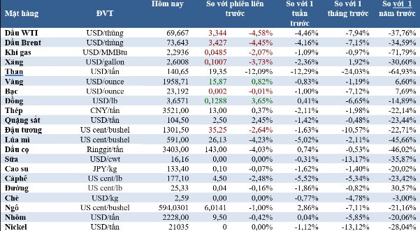 Dầu thô Brent kết thúc phiên giảm 3,53 USD, tương đương 4,6%, xuống 73,54 USD/thùng. Dầu thô Trung cấp Tây Texas của Mỹ (WTI) giảm 3,21 USD, tương đương 4,4%, từ mức đóng cửa hôm thứ Sáu, xuống còn 69,46 USD/thùng.