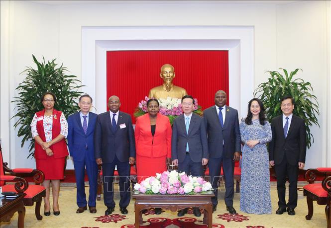 Đồng chí Võ Văn Thưởng và Chủ tịch Quốc hội Mozambique Esperanca Laurinda Francisco Nhiuane Bias chụp ảnh chung với các đại biểu.