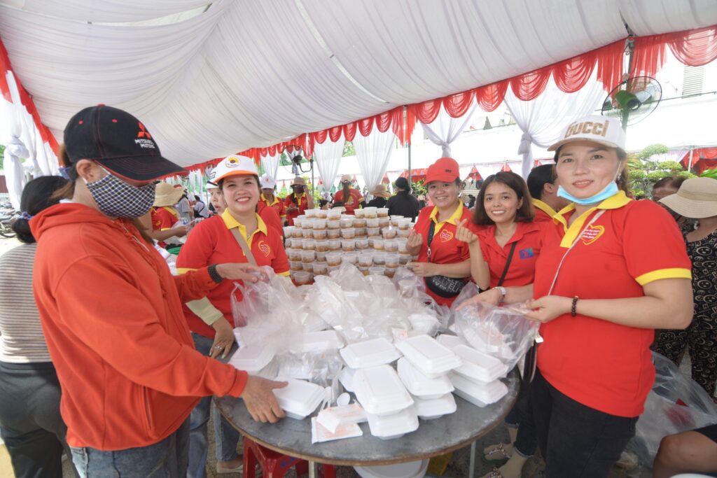 Các tình nguyện viên ở bộ phận ẩm thực chăm lo từng suất ăn phục vụ cho một chương trình khám bệnh từ thiện tổ chức tại giáo xứ