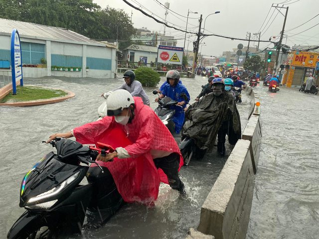TP.HCM: Mưa lớn kéo dài nhiều tiếng đồng hồ gây ngập lụt nghiêm trọng tại nhiều tuyến đường - Ảnh 1.