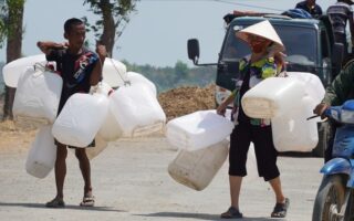 Đồng bằng sông Cửu Long mùa này kênh rạch trơ đáy, đường sá sụt lún, lúa chết vì ruộng đồng khô khốc, nứt nẻ, người dân phải mang can nhựa...