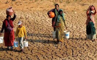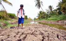 Đồng bằng sông Cửu Long mùa này kênh rạch trơ đáy, đường sá sụt lún, lúa chết vì ruộng đồng khô khốc, nứt nẻ, người dân phải mang can nhựa...