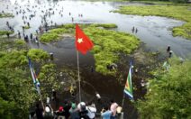 Đông đảo người dân và du khách đã tập trung về Khu du lịch sinh thái Trà Lộc, huyện Hải Lăng, tỉnh Quảng Trị tham gia lễ hội phá trằm...