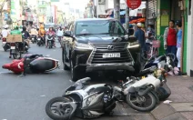 Đang chạy trên đường Phan Đình Phùng, quận Phú Nhuận (TP.HCM) chiếc Lexus LX570 chỗ bất ngờ lao nhanh về trước tông hàng loạt xe máy. Khoảng 15h45 ngày 10/9,...