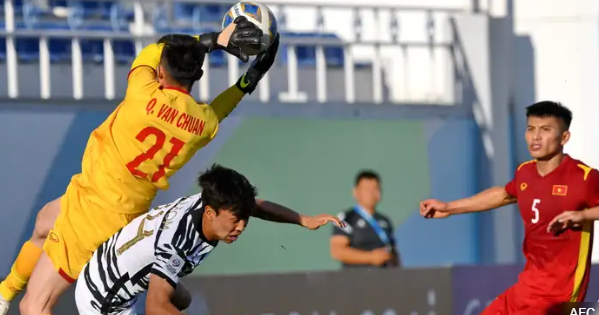Thủ môn Quan Văn Chuẩn (áo vàng) đã chơi xuất sắc trong trận gặp U23 Hàn Quốc. Ảnh: AFC